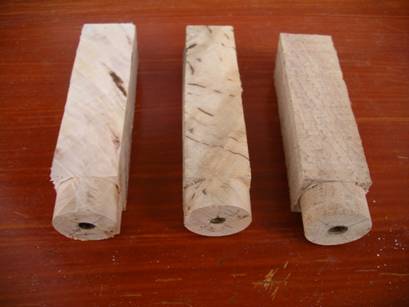 材料を20×20×100oの寸法で切り出します。材料は、ある程度の堅さがあればなんでも構いません。