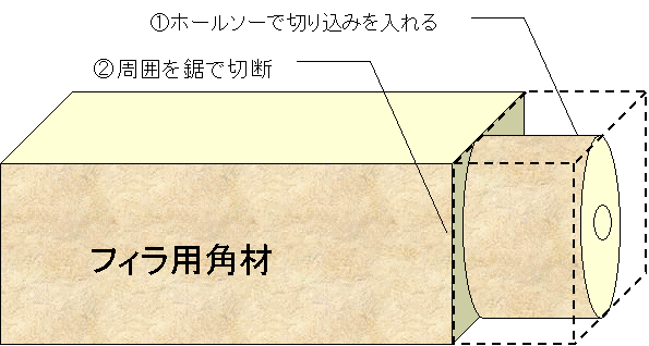 1 フィラー材の切り出し(できあがり寸法 直径17o,長さ85o)