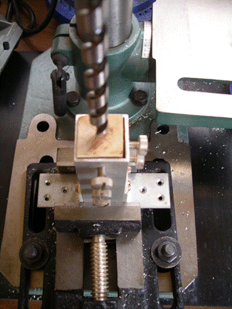 三爪チャックでは、角材がつかめないので図の様に角材の一部にホルソーで