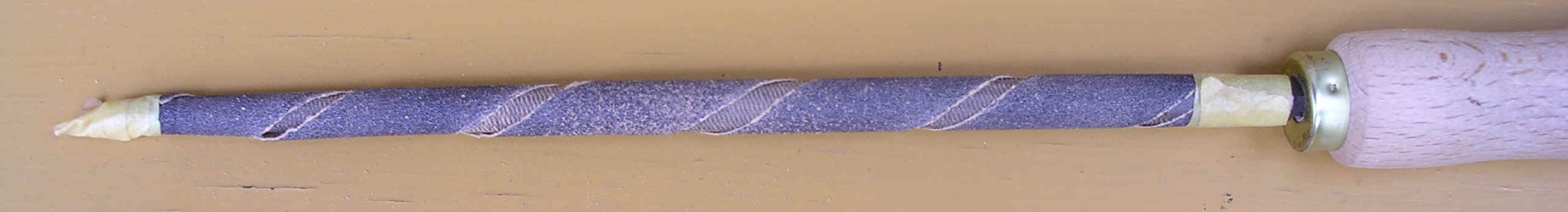 切り取ったサンドペーパー(#60〜#100位)をスパイラルに巻きつけ太さを調整すると、