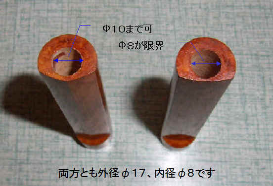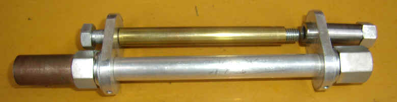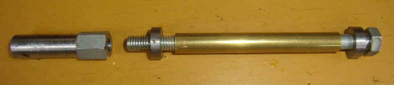 ■外形を丸く削るツールです M8の長ボルトとM8の長ナットからできています。真鍮パイプは、穴径φ9・φ10の時使用します。