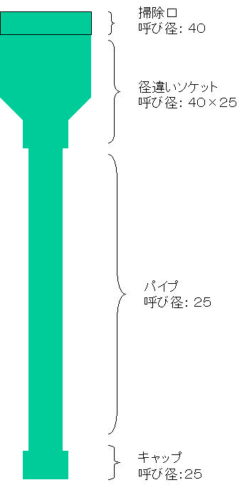 の塩ビ用の接着剤を使います。掃除口を付ける事で、蓋(ネジ式)が